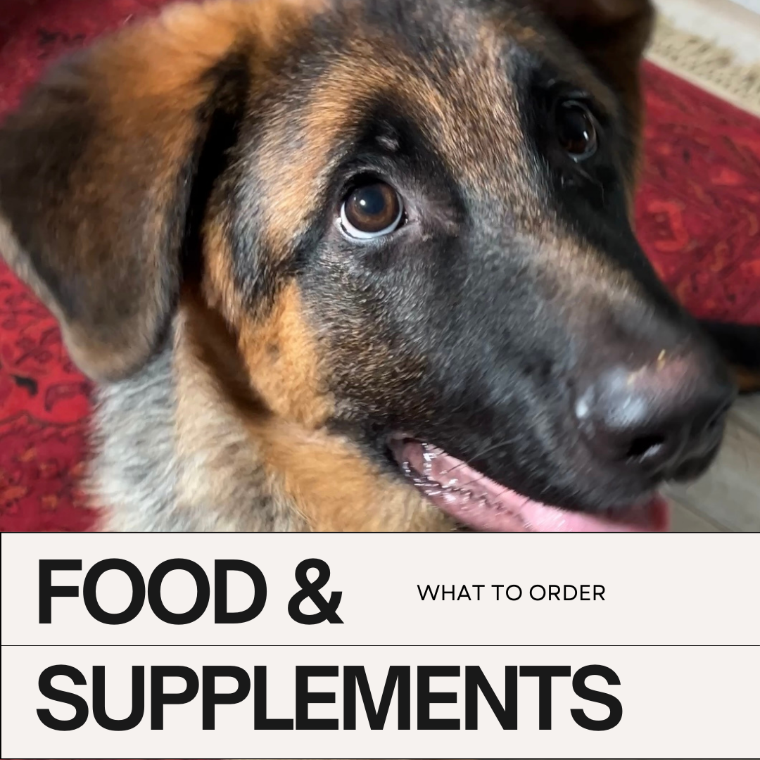 FOOD & SUPPLEMENTS - Since Go Home Day is a big adjustment for a pup we ask that you give a 9 week commitment to keeping your pup on the same food they’ve started out on. This prevents upset stomach, diarrhea, and even possible reactivation of dormant parasites. Shipping can be slow so be sure to order your food at least 10 days prior to Go Home Day